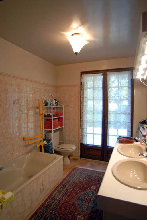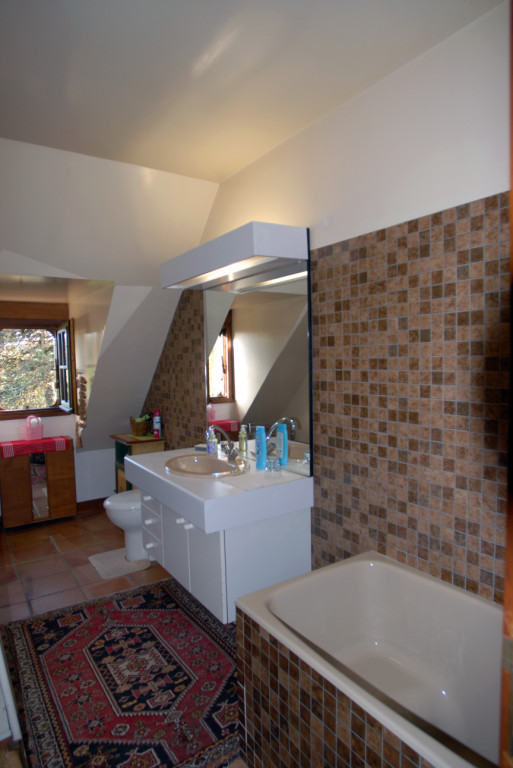 • salle de bains avec WC ensuite de 2,25 x 4 m avec double porte/fenêtre donnant sur la terrasse