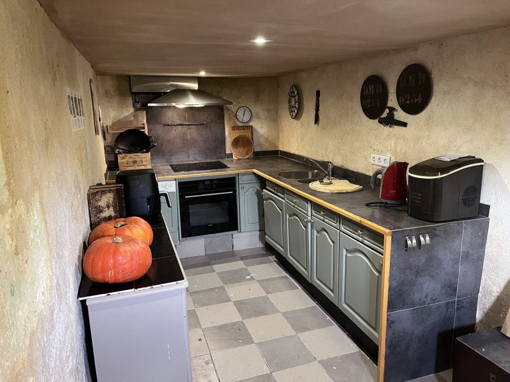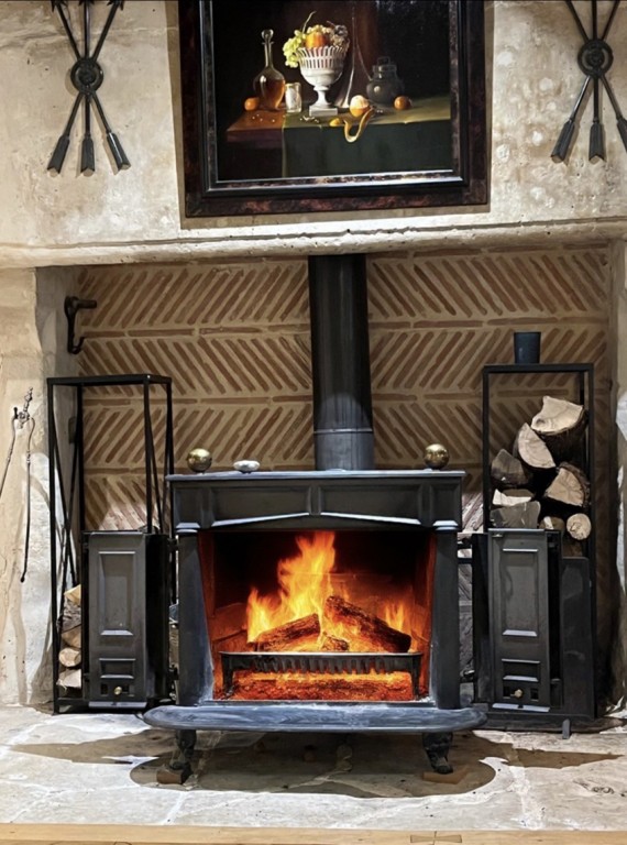 • cuisine/salle à manger de 3 x 7,2 m avec cuisine équipée et poêle à bois