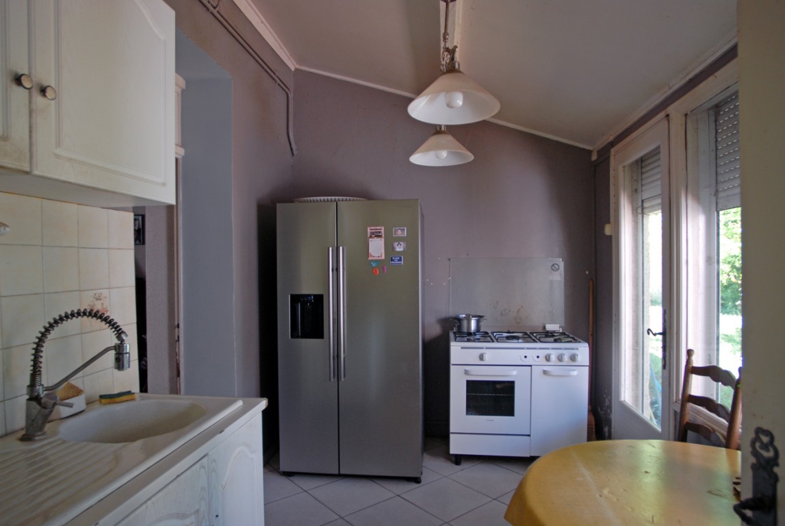 • cuisine/salle manger équipée de 4,7 x 5 m avec carrelage au sol