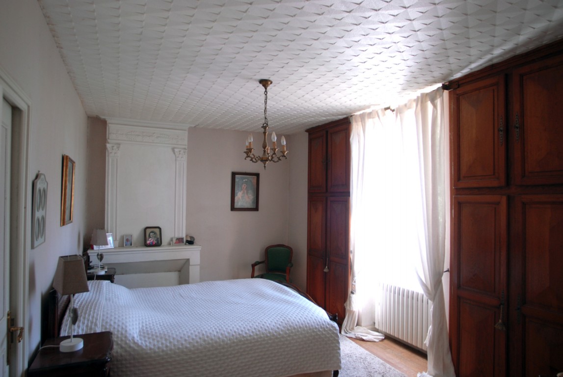 • chambre de 5 x 5 m avec cheminée et 2 armoires en noyer encastrées