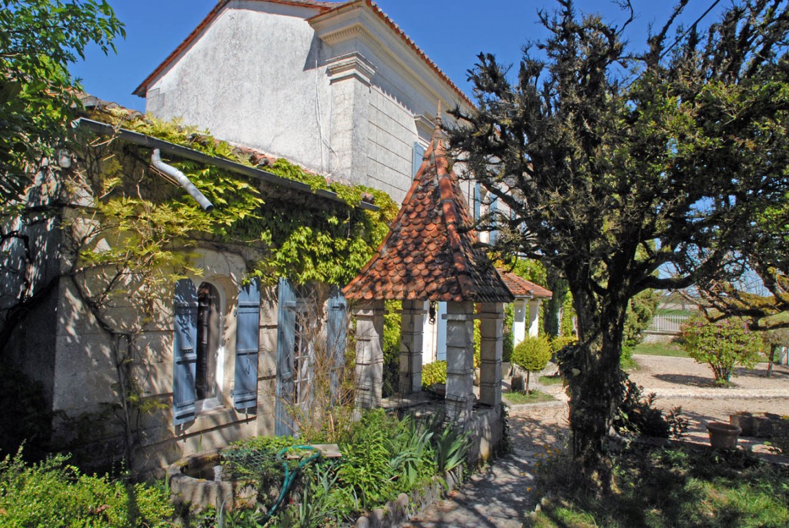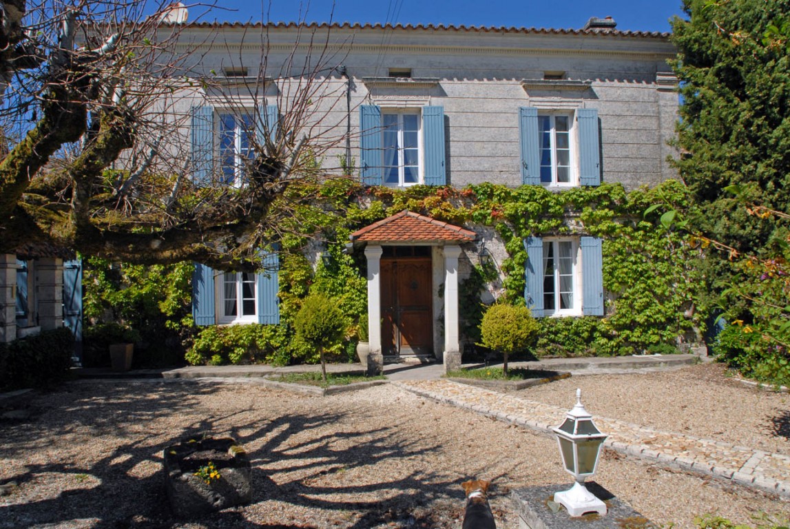 À moins de 10 minutes de Riberac en plein campagne, sur les hauteurs avec une vue dégagée sur la campagne vallonnée, une maison de maître du XIX° siècle de 192 m2 située sur un terrain de 22 940 m2 avec piscine, dépendances attenantes et un bâtiment industriel un peu à l’écart.